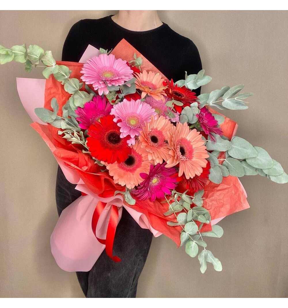 Букет из гербер - это яркое и радостное сочетание цветов, которое наполнит день яркими эмоциями. Герберы с их крупными округлыми цветками и сочными оттенками приносят радость и настроение, словно создавая солнечный настрой в любое время года. Этот букет подарит позитивные эмоции и улучшит настроение получателя, станет отличным подарком для поздравления, выражения благодарности или просто для поднятия настроения близким и любимым людям. Он символизирует счастье, радость и бесконечную любовь.